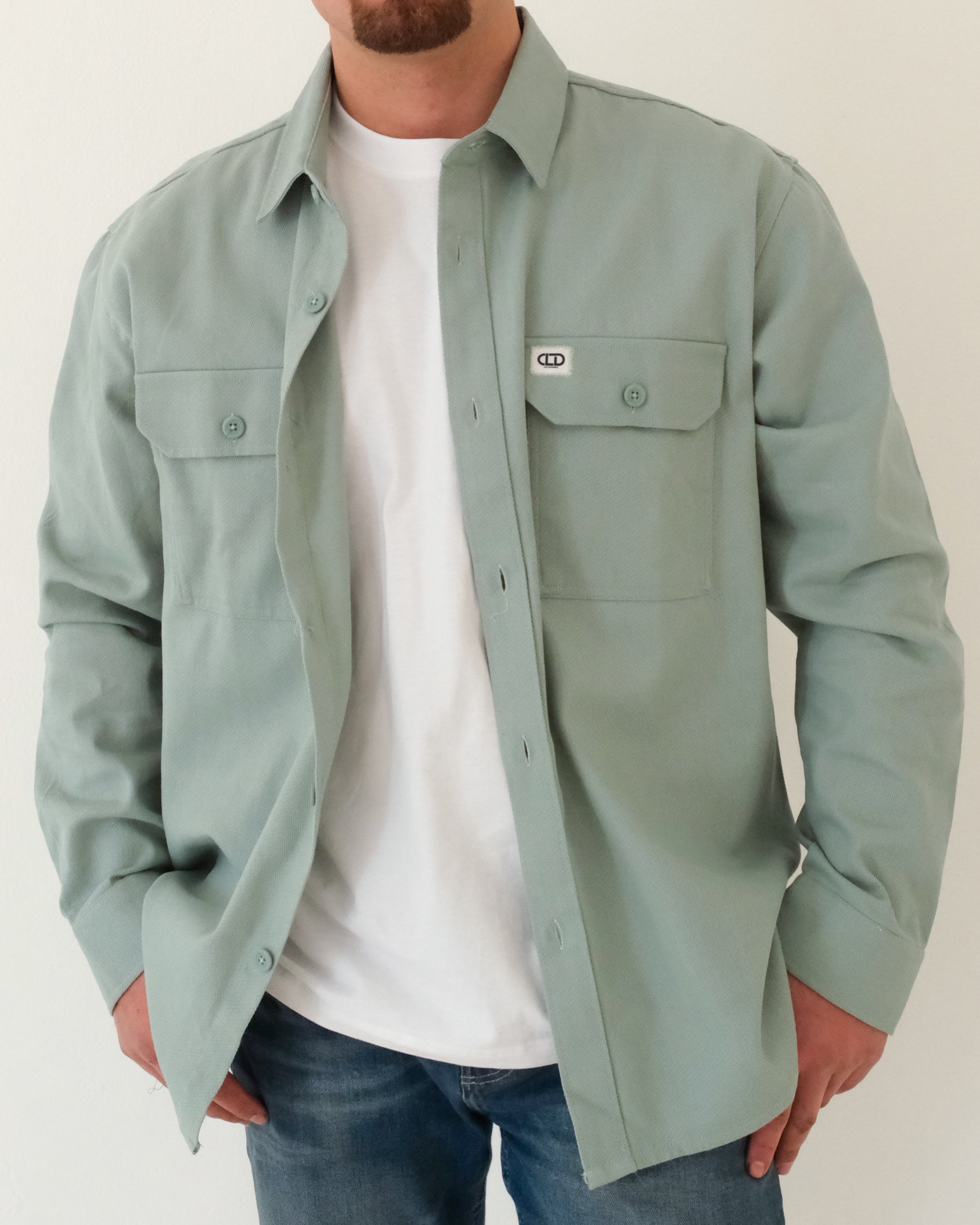 Elevate your everyday style with the Sage Field Overshirt, A refined layering piece designed for versatility and subtle sophistication. Crafted in a muted sage tone, this overshirt features dual chest pockets with flap closures, a crisp button-front, and a relaxed silhouette that pairs seamlessly over tees or knits.